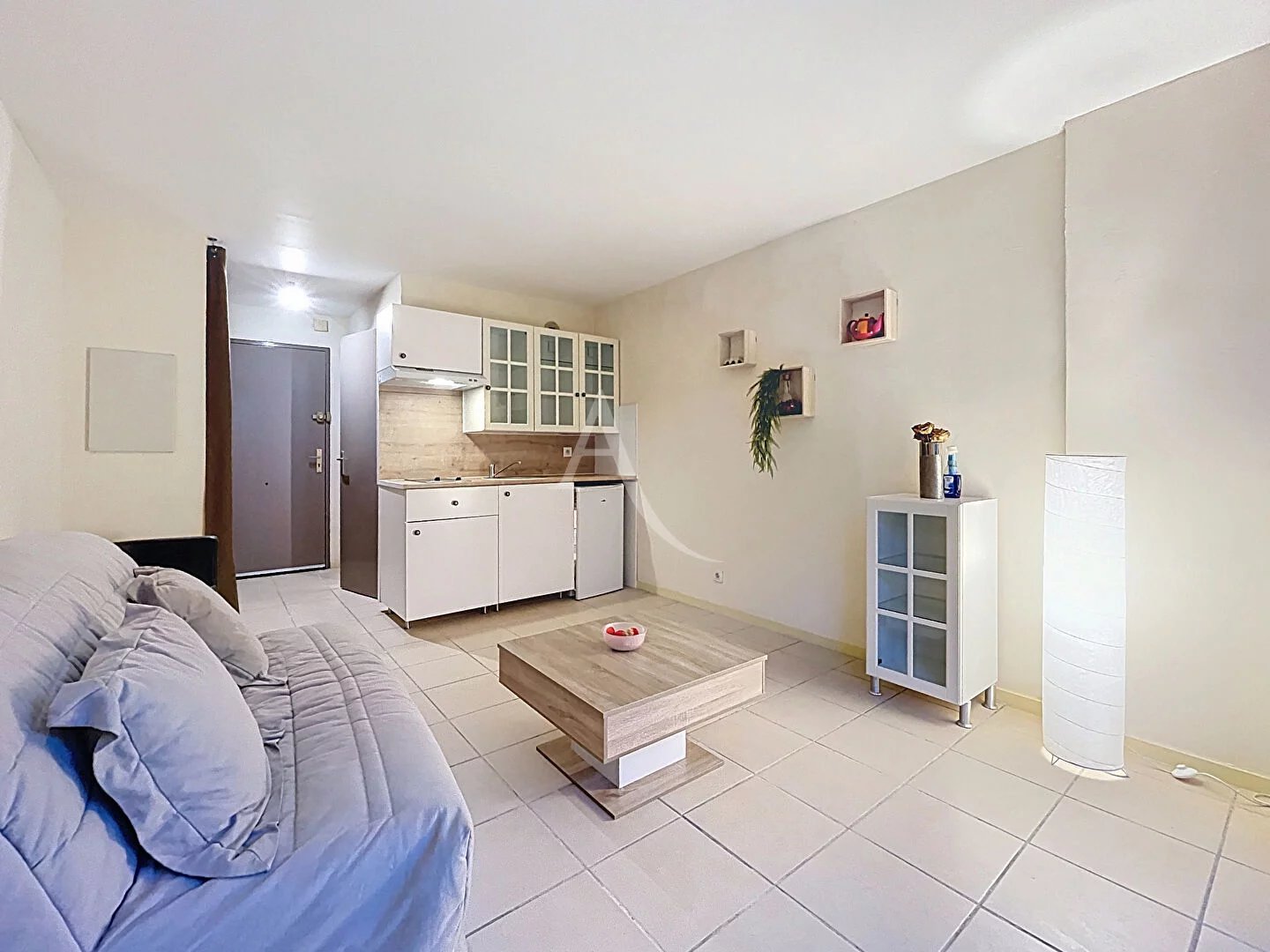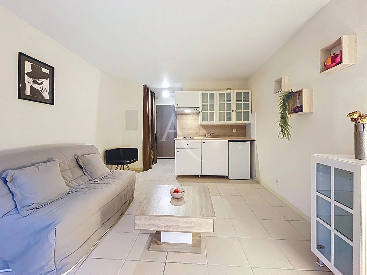 L’AGENCE L’ADRESSE de CANNES, vous propose à la location meublée à l’année ce charmant studio situé dans une résidence de standing avec piscine, à seulement 5 minutes à pied de la gare SNCF – gare routière . Proche toutes commodités et transport en commun. Studio de 21m² comprenant ; une entrée avec placard, pièce à vivre, cuisine ouverte, salle de bains avec WC. Une cave vient compléter ce bien. Disponible immédiatement. Les visites seront possibles que sur dossier complet. DG : 1.286 Euros Honoraires agence charge locataire : 275.34 Euros. Copropriété de 57 lots (Pas de procédure en cours).