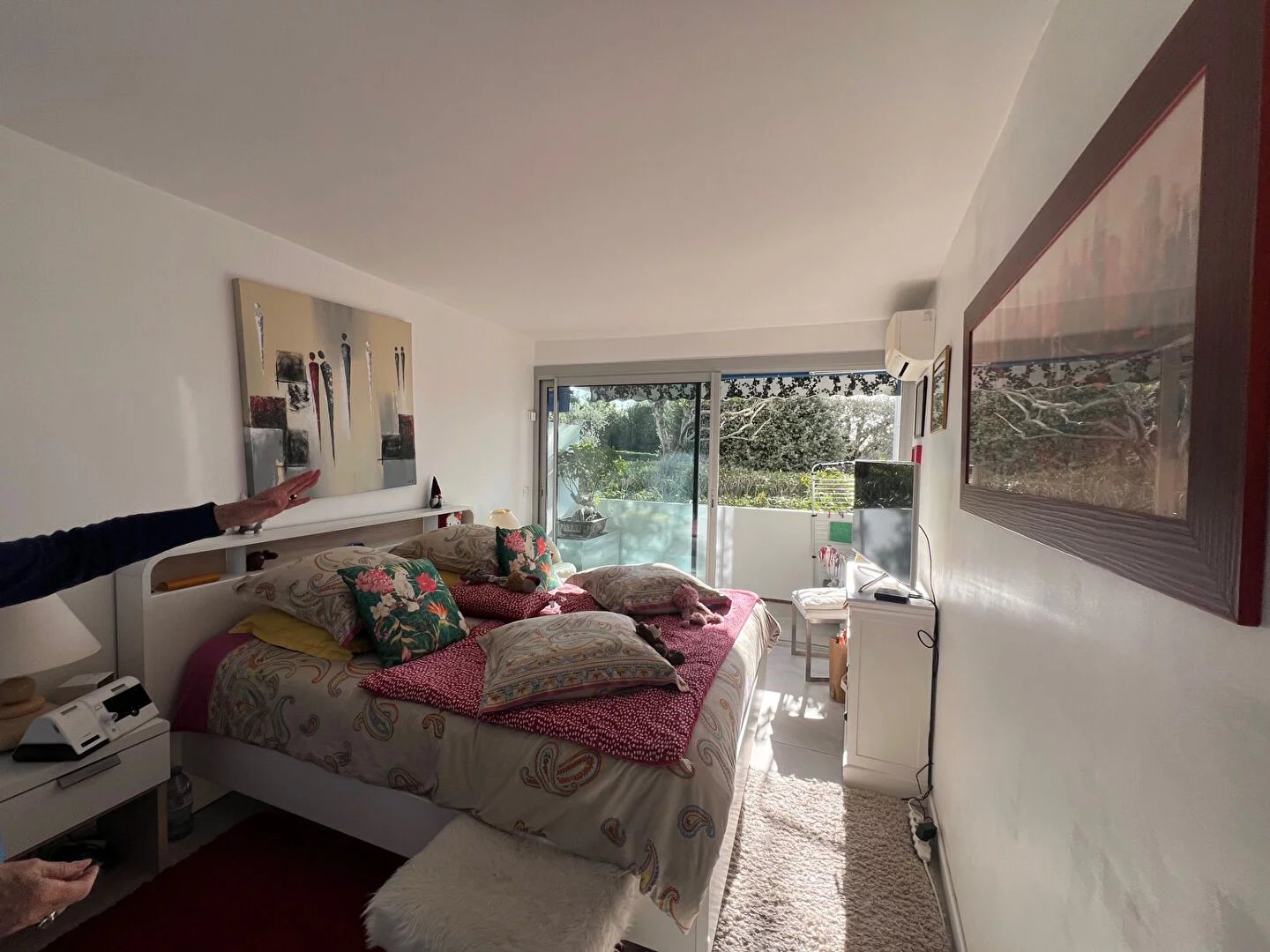 Situé en rez-de-jardin surélevé, desservi par ascenseur, l’appartement bénéficie d’une vue dégagée sud-ouest sur la piscine et le parc arboré et d’une belle luminosité.